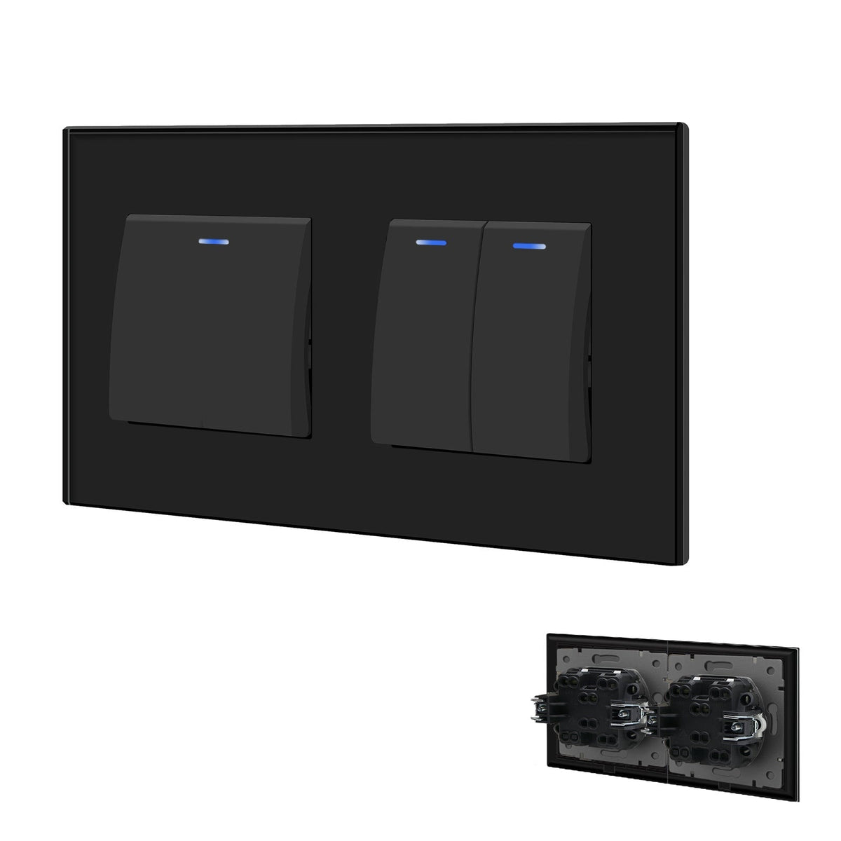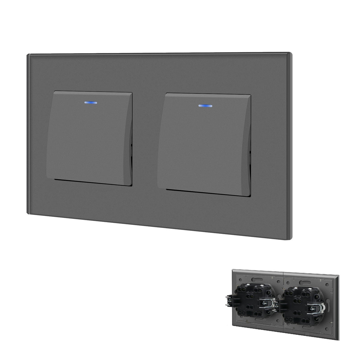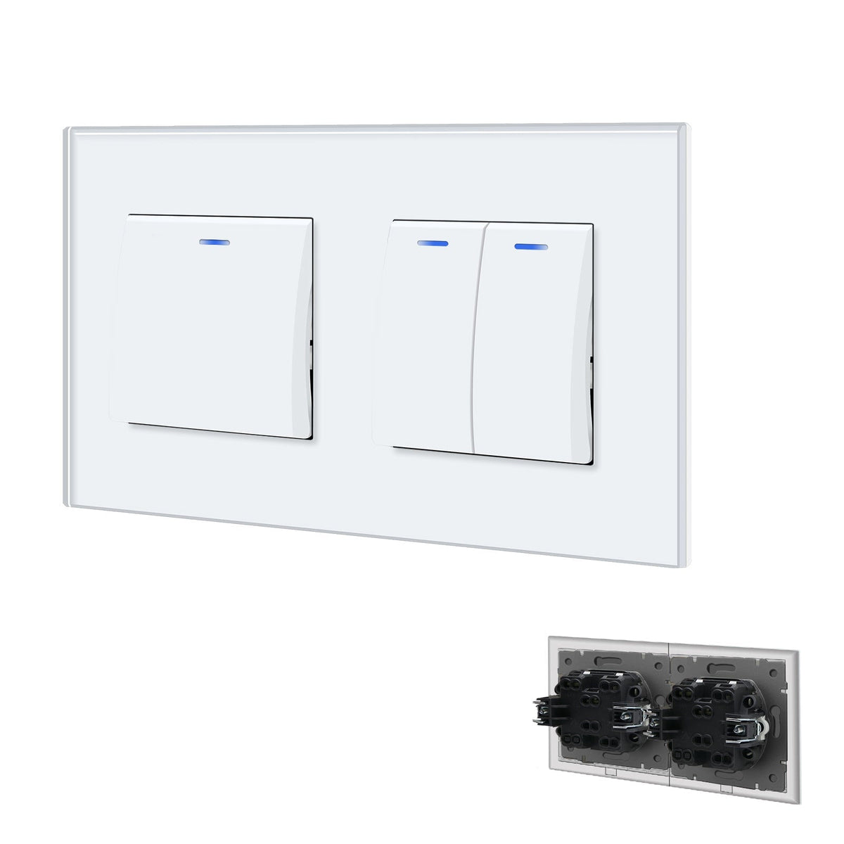 Grand Series Mechanical Double Light switch with Clamping Technology With Neon Light Switches Bseedswitch White 1 Gang 1 Way + 1 Gang 1 Way