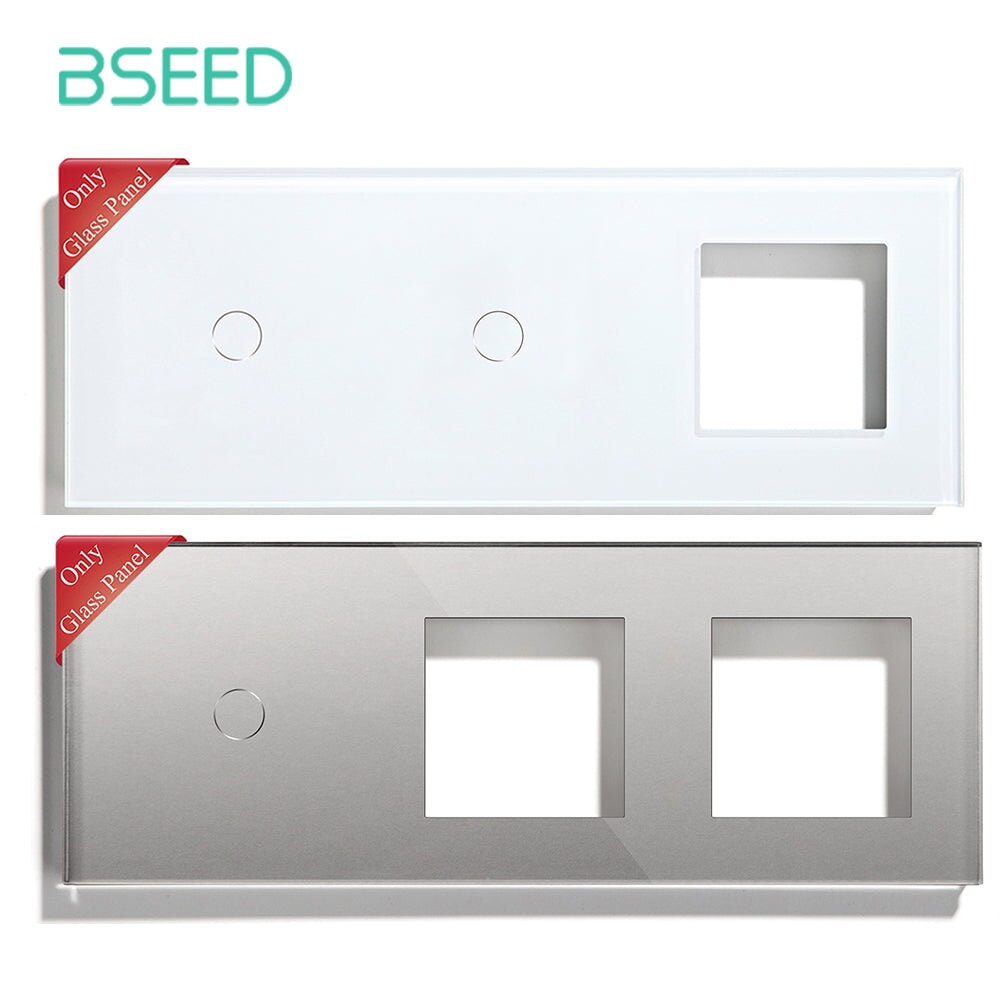Bseed Panel with Double Frame Crystal Glass 1/2/3 Gang with Slots Bseedswitch White 2Gang + 2Gang+1 slots