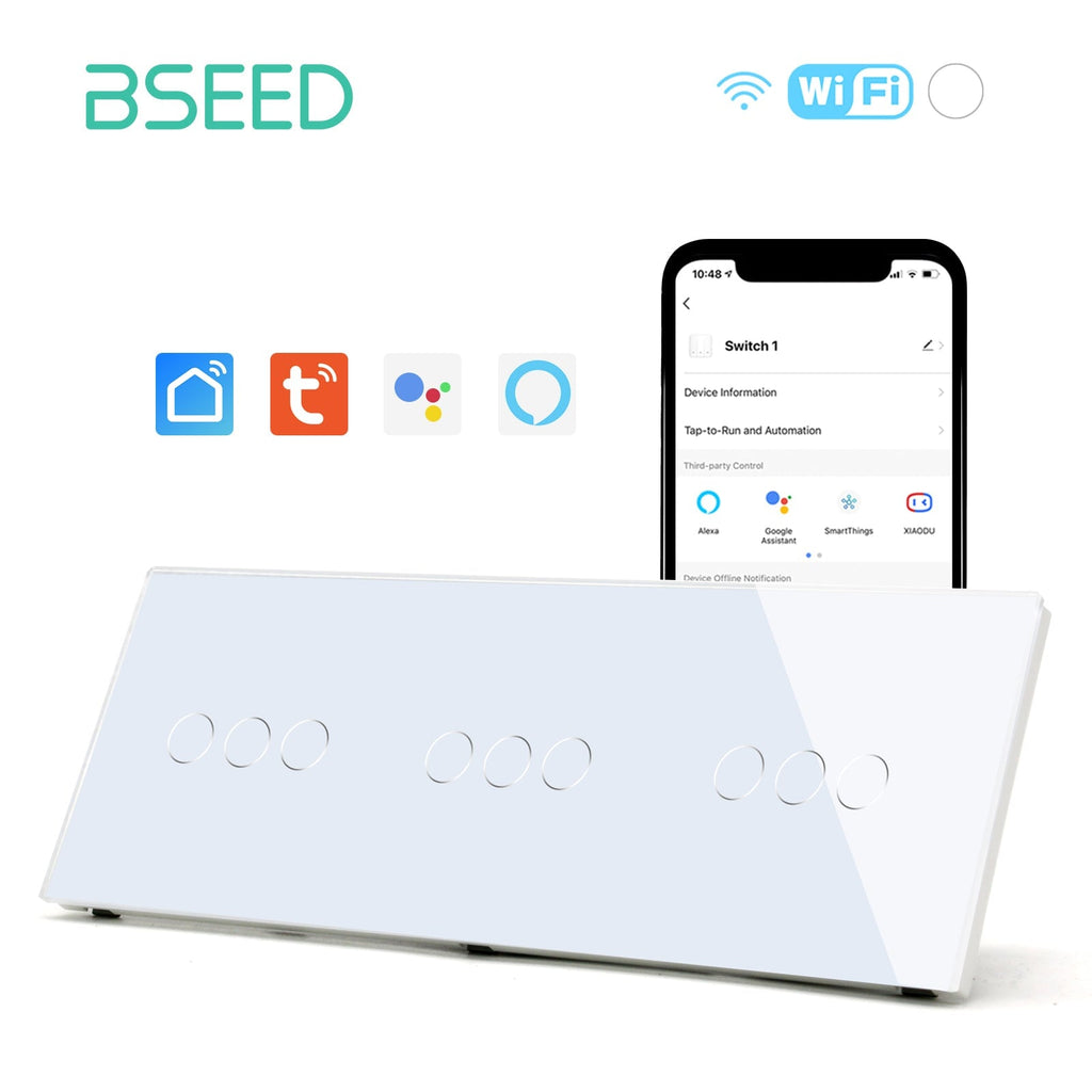 Bseed Smart Wifi Triple Light Switch (With Neutral) Light Switches Bseedswitch White 1Gang