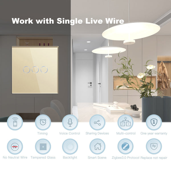 BSEED ZigBee FR Wall Sockets Power Outlets Kids Protection with metering Wall Plates & Covers Bseedswitch gold Triple