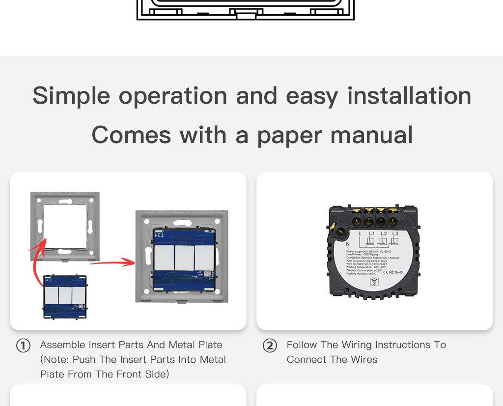 | Draadloos verbruik: ≤0.2W | Max. Spanning: 90 ~ 250V(AC) |