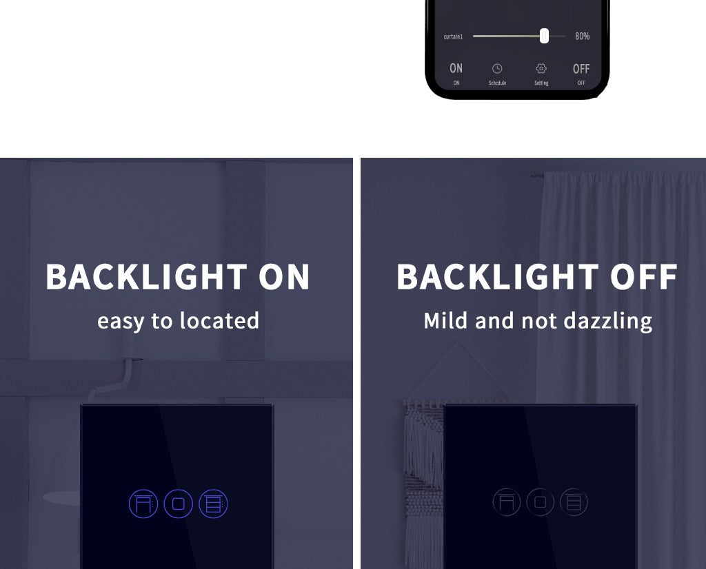 A: De blauwe achtergrondverlichting gaat aan wanneer de bedrading succesvol is. Zo kunt u onze touch-schakelaar duidelijk zien in het donker.