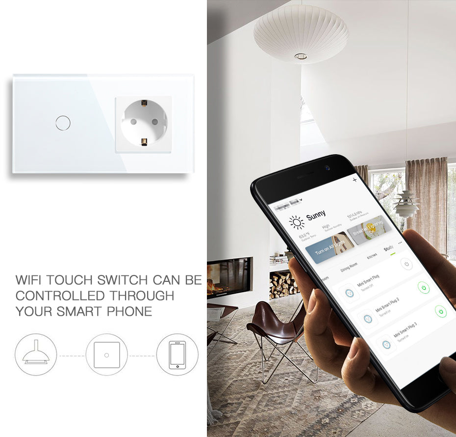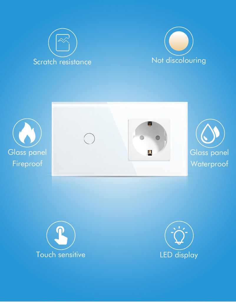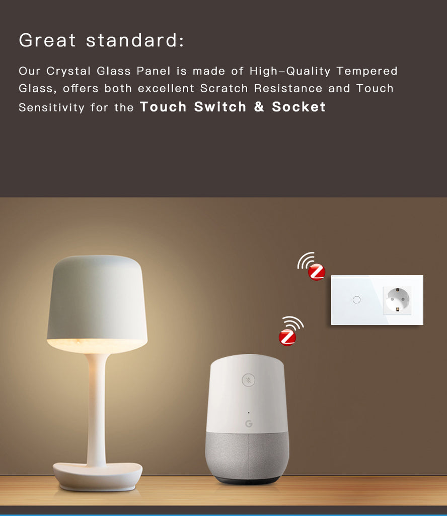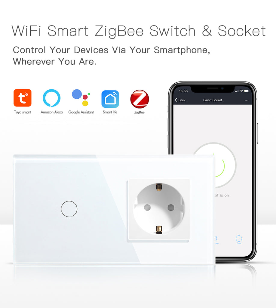 Bseed New Zigbee Wifi Single Live 1/2/3 Gang Touch SwitchEU Standard With Normal Socket 4 Color Crystal Glass Panel Smart Home