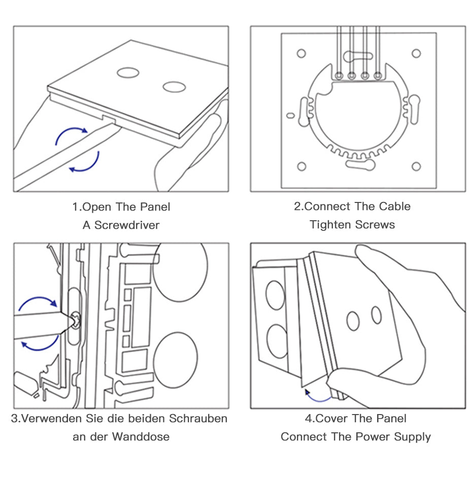 A: The blue backlight will be on when the wiring is successful. Allowing you to notice Our touch switch clearly in the dark.