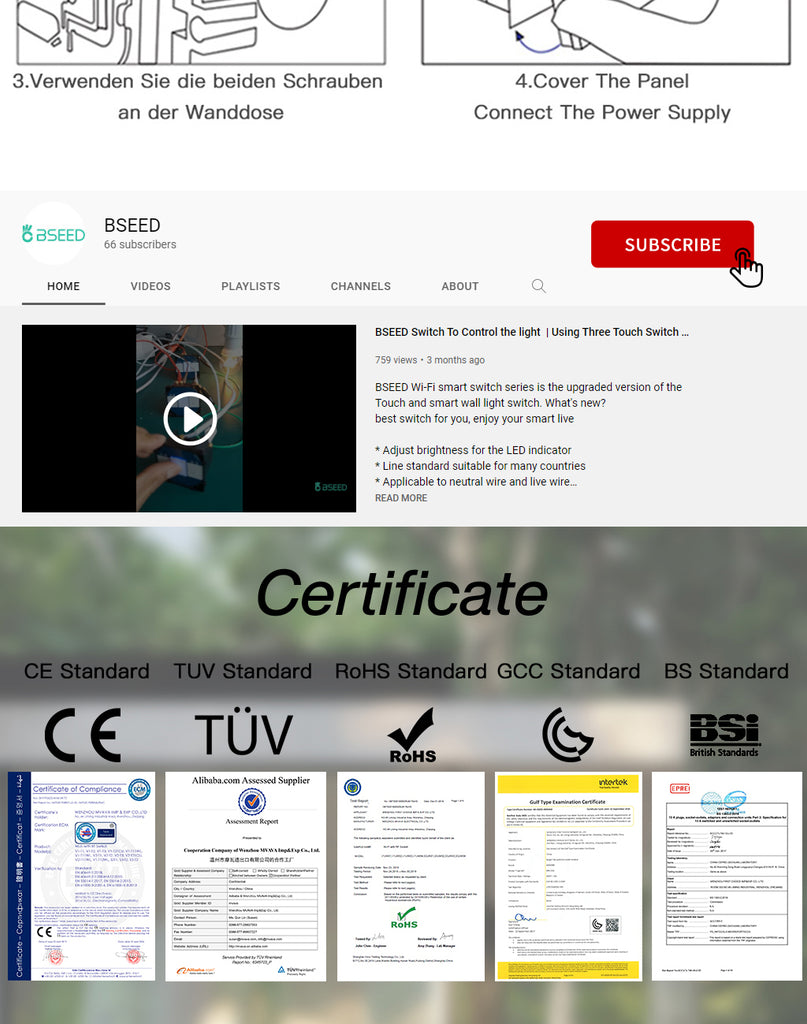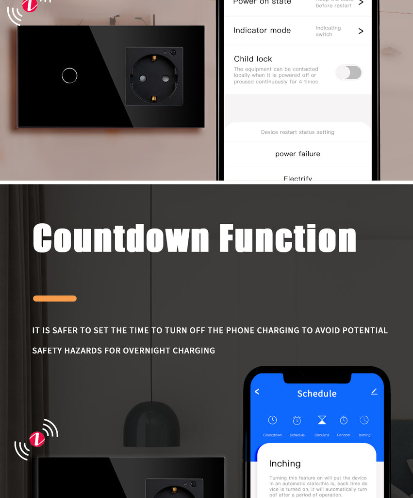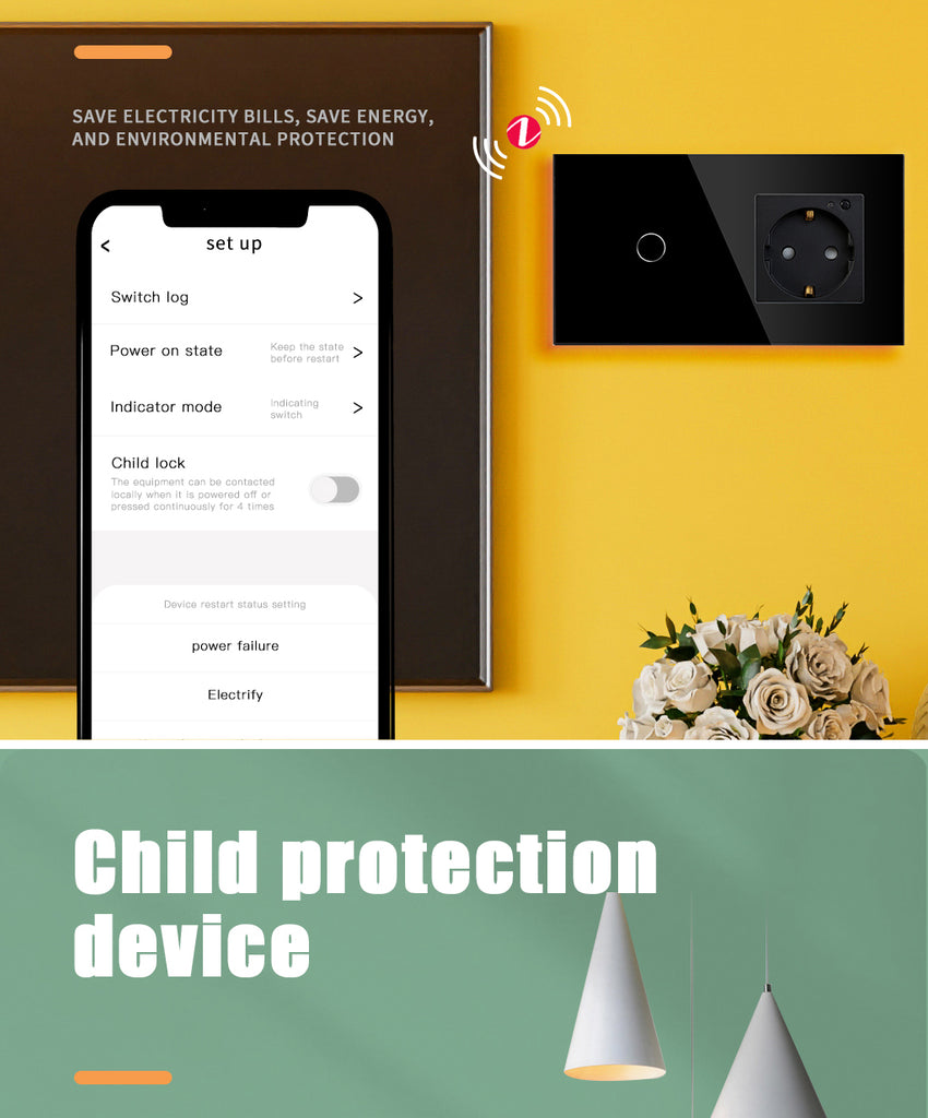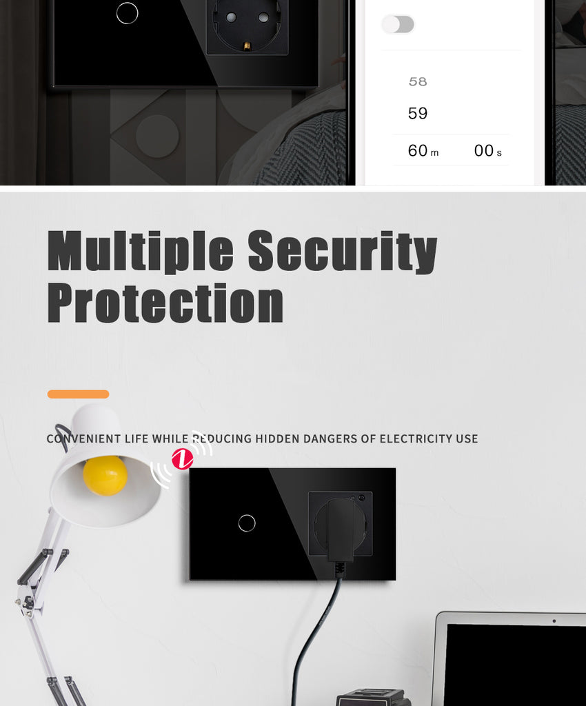 2.Our Wifi home socket and switch are Fireproof and Waterproof. Protection Against Electric Shock for Your Family.