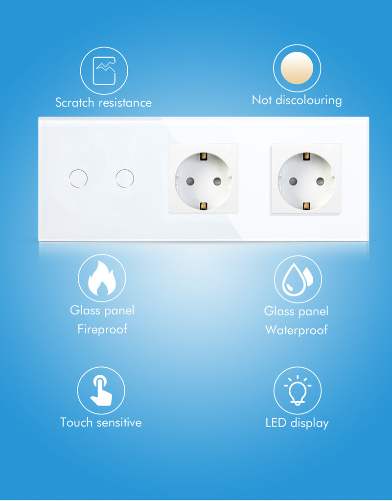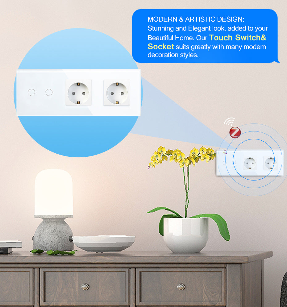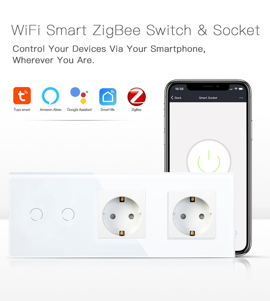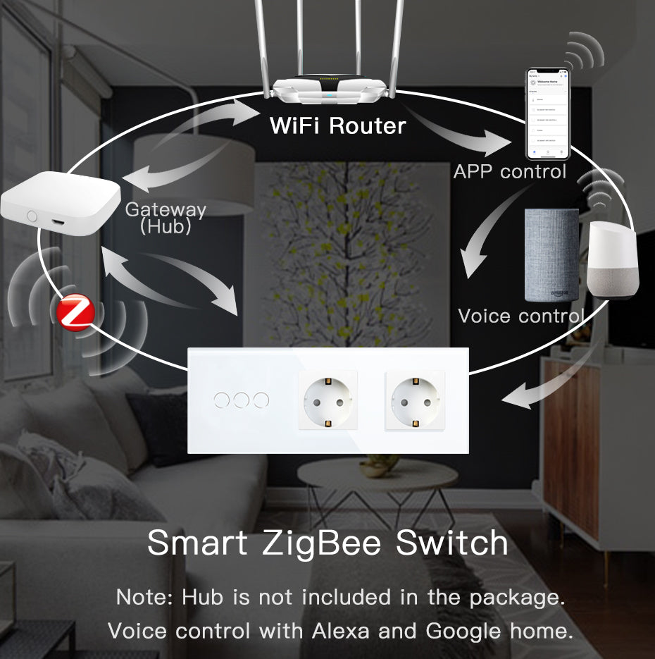 Bseed Zigbee Touch 1/2/3 Gang Light Switches No Neutral Multi Control With Double EU Standard Not Smart Wall Sockets