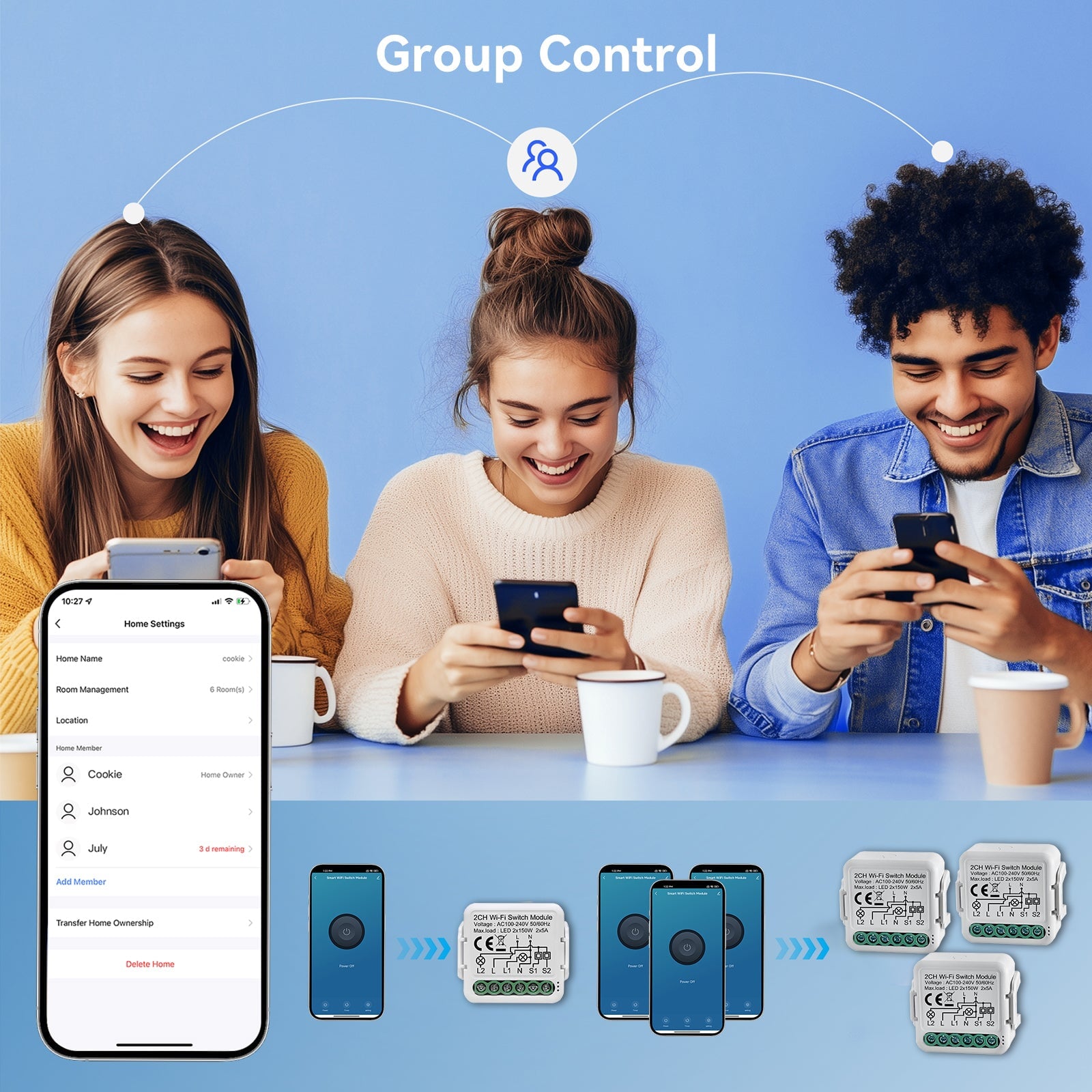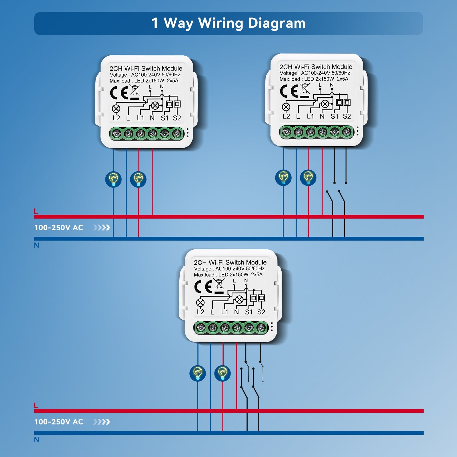 Módulo de interruptor de parede WiFi inteligente BSEED 2Ch Módulo de interruptor de luz WiFi